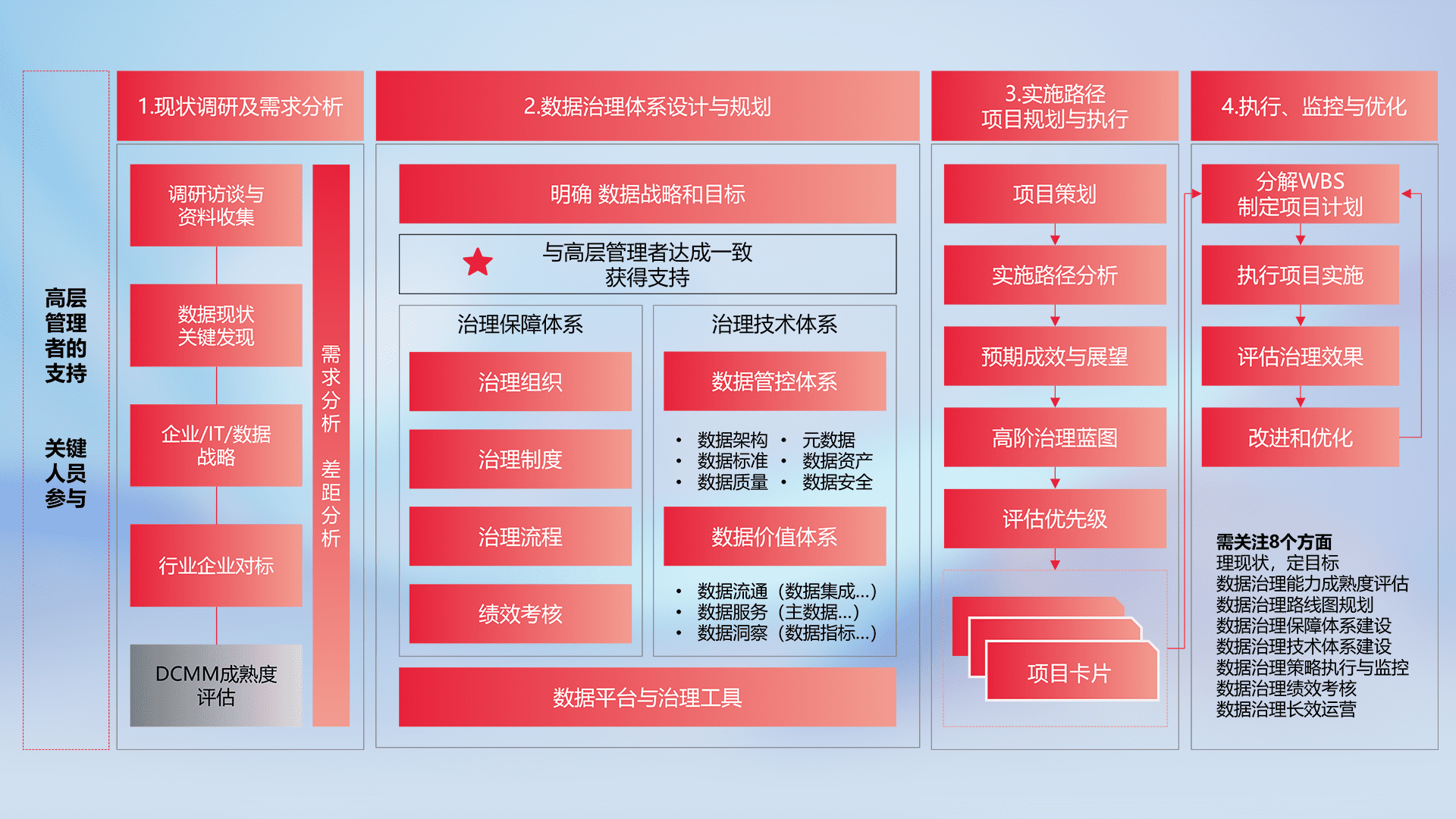 以高阶专业视角定制解决方案,,结合行业最佳实践,,,,覆盖数据全生命周期管理,,确保策略落地执行,,助力企业构建高效、、、、可持续的数据管理体系,,,,推动数字化转型。。